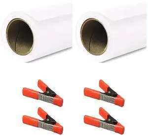 Savage 86"x18' Widetone Seamless Background Paper, Super White, 2-Pack, Bundle with 4x 1-1/4x1" Steel Spring Orange Clamp