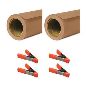 Savage 53"x36' Widetone Seamless Background Paper, Mocha, 2-Pack, Bundle with 4x 1-1/4x1" Steel Spring Orange Clamp