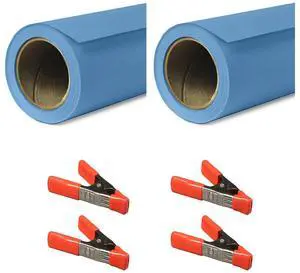 Savage 53"x36' Widetone Seamless Background Paper, Gulf Blue, 2-Pack, Bundle with 4x 1-1/4x1" Steel Spring Orange Clamp