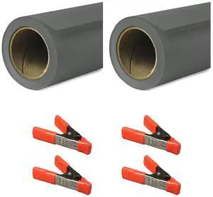 Savage 53"x18' Widetone Seamless Background Paper, Thunder Gray, 2-Pack, Bundle with 4x 1-1/4x1" Steel Spring Clamp, Orange
