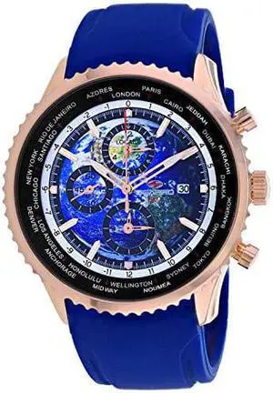 Seapro Mens Meridian World Timer GMT Stainless Steel Quartz Rubber Strap, Blue, 22 Casual Watch (Model: SP7521)