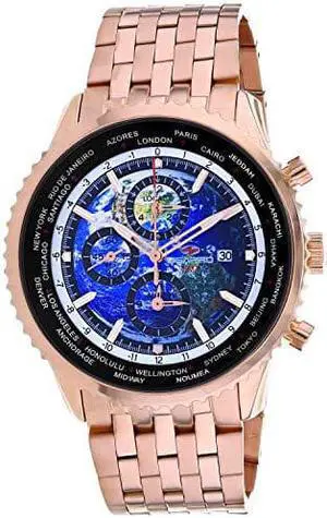 Seapro Mens Meridian World Timer GMT Quartz Stainless Steel Strap, Rose Gold, 22 Casual Watch (Model: SP7321)