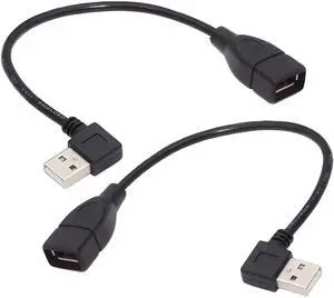 Jimier 2pcs/lot Left & Right Angled Type USB 2.0 Type-A Male to USB Female Extension Cable 90 Degree Type 20cm