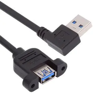 Jimier Left Angled USB 3.0 Male to Female Type-A Panel Type Header Cable 90 Degree Connector 30cm