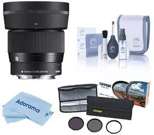 Sigma 56mm f/1.4 DC DN Contemporary Lens for Fujifilm X, Bundle with 55mm Essential Filter Kit, Cleaning Kit and Cleaning Cloth