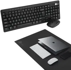 SIIG Extra Large Black Vegan Leather Desk Mat and Wireless Keyboard & Mouse Combo