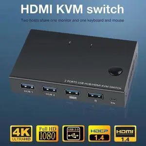 2 Ports USB HUB/ KVM Switcher 2 in 1 Out KVM Switch Box Video Display 4K USB Hub Splitter for Computer