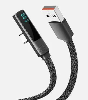 SOEWIOU 66W Elbow Fast Charging Cable with Digital Display, USB to Type-C, Universal for iPhone 17 & Android Phones, 47.24in
