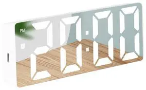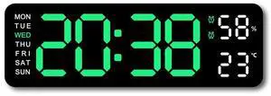 SOEWIOU Simple Multifunctional Electronic Clock, Rectangular Large Font Alarm Clock, Wall & Desk Clock, White Case Green Light