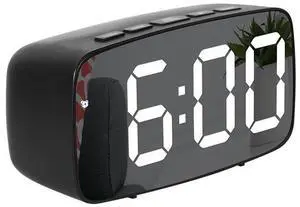 SOEWIOU LED Mirror Electronic Alarm Clock, Fashion Silent Clock for Student Dorm, European Creative Multi-Function Desk Clock