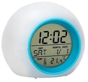 SOEWIOU Ball Shape Perpetual Calendar LED Clock, 7-Color Changing Light, Natural Sound Digital Alarm Clock for Bedroom