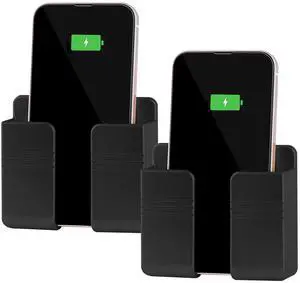 SOEWIOU 2Pcs Phone Holder Wall Mounted, Phone Stand with Self Adhesive. Phone Holder for RV Charging.Compatible with iPhone and Android (2Pack-Black)