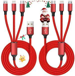 SOEWIOU Multi Charging Cable, (2 Pack 4FT) Multi USB Charger Cable 3 in 1 Charging Nylon Braided Charging Cord with Type-C, Micro USB, IP Port for Most Phones/iPhones/Tablets, Red