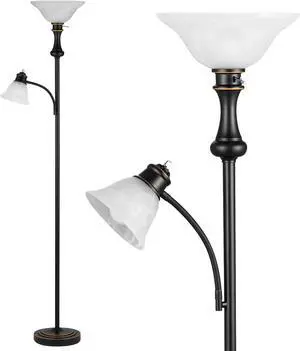 71'' Torchiere Floor Lamp for Bedroom with Glass Shade, Tall Floor Lamps for Living Room with Adjustable Angle Arc Reading Light, Modern Standing Light, Knob Switch, Bulb Included, Black