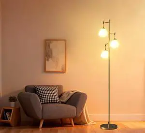 Tangkula Mid Century Floor Lamp, Modern Freestanding Lamp with 3 Glass Globe Lampshades, Weighted Base, Convenient Foot Switch, Standing Tree Lamp for Bedroom Living Room, E26 Bulb Base (Art Deco)