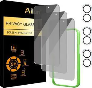 3 Pack Privacy Screen Protector for iPhone 17 [6.3 inch]+ 3 Pack Camera Lens Protector with Installation Frame Dynamic Island Compatible Anti Spy Tempered Glass[9H Hardness]-HD