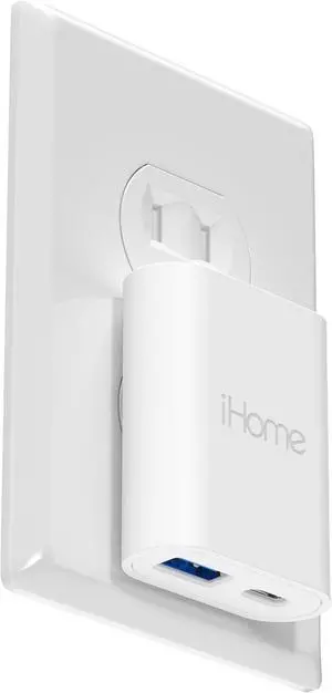 iHome USB C Charger: AC Pro 20W Multiport (1 USB-C Port, 1 USB-A Port), Flat USB Block, Dual Port USB Plug Adapter & Phone Charging Block