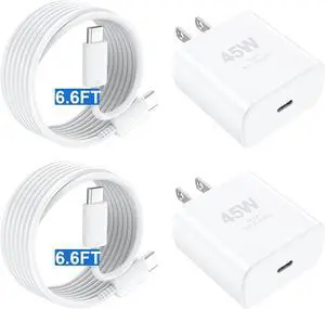 Type C Charger, 2 Pack 45W USB C Wall Charger Super Fast Charging Block & 6.6ft Phone Cable Cord,White
