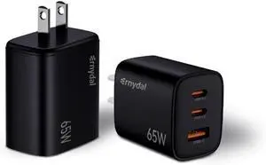 65W GaN USB-C Fast Charger Block with Dual USB-C & USB-A Ports, Compact Power Adapter for MacBook, iPad, iPhone, Galaxy, and More Black