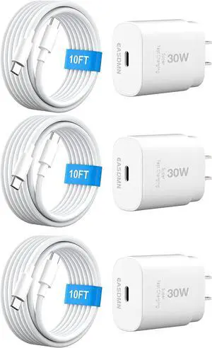 30W USB C i Phone 17 16 15 Charger Fast Charging, 3PACK Wall Charger for iPhone 16 15 Pro Max Charger Cord 10FT Fast Type C Charger Block for iPhone 17 Pro Max/17 Air/16/15 Plus/15 Pro Max, iPad Pro