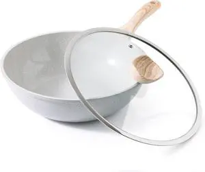 CAROTE Non Stick Wok with Lid 12''/5.3QT Woks & Stir-fry Pans Nonstick Granite Wok Pan Induction Cookware Deep Frying Pan, Compatible with All Stovetops