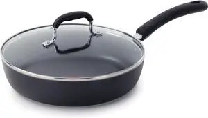T-fal Experience Non Stick Fry Pan w/Lid 10 Inch, Induction, Oven Broiler Safe 400F, Compatible with All Cooktops, Cookware, Deep Frying Pan, Cooking Skillet, Pots and Pans, Dishwasher Safe, Black