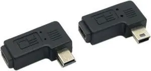 2pcs 90 Degree Left & Right Angled Mini USB 5 Pin Male to Female Extension Adapter