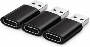 USB to USB-C Adapter 3 Pack Type-C Female to USB-A Male Converter for iPhone Charging Watch iPad AirPods USB-C Cables Car Charger Laptop Galaxy