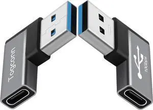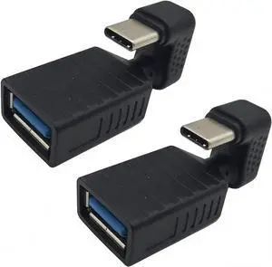 90 Degree USB to USB C Adapter 10Gbps 2-Pack Right Angle Type-C (Female) to USB-A (Male) Converter Extender Support Charge & Data Transfer Compatible with Computers Tablet Laptop