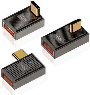 90 Degree USB C to USB A Adapter 10Gbps USB C Male to USB A Female Adapter 120W Right Angle USB C to USB Adapter Zinc Alloy Type C Converter for Mac Book iPad Galaxy (3Pack Gun Color)