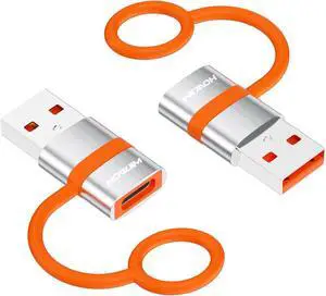 USB to USB C Adapter 2Pack USB C Female to USB3.0 Male Adapter 3A Fast Charging 5Gbps Data Transfer for M-acBook Phone 15 16 Pad A-pple Watch A-irpods M-agSafe G-alaxy Anti-Lost Loop Silver