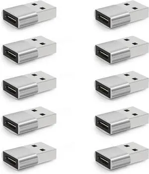 [10 Pack] USB to USB C Adapter Type C Female to A Male Charger Cable Converter for iPhone 15 14 13 Pro Max Plus Watch Ultra iWatch 9 8 7 MacBook Pro iPad 10 9 Galaxy S20-23 Silver