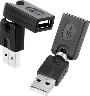 2 Pack 360 Degre Swivel USB 2.0 Adapter Rotatable Type A Male to Type A Female USB 2.0 Adapter Black Adjustable Right Angle Extension Adapters Convertor (AM-FM)