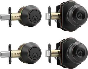 3 Pack Entry Door Locksets with Single Cylinder Deadbolt, Oil Rubbed Bronze Exterior Door Lock Set with Same Key, Front Roound Door Knob and Deadbolt Set
