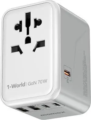 Universal Travel Adapter 70W GaN 3 USB-C PD & 2 USB-A QC International Power Adapter Outlet 6-in-1 Wall Charger for Laptop Phone European Travel Plug Adapter for UK/US/AUS/JP