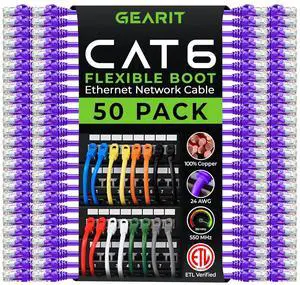 GEARit 50-Pack Cat6 Patch Cable 1 Foot Cat 6 Ethernet Cable Snagless Flexible Soft Tab - Premium Series - Purple