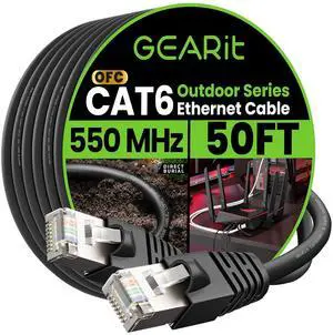 GEARit Cat6 Outdoor Ethernet Cable (50ft) 23AWG Pure Copper, FTP, LLDPE, Waterproof, Direct Burial, In-Ground, UV Resistant, POE, Network, LAN, Internet, Cat 6, Cat6 Cable - 50 Feet