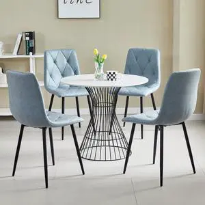 Btrpily 4 Set of Dining Chairs, Metal Frame Dining Chair for Kitchen Room,Technology Cloth Seat Chair for Living Room, Bedroom(Light Blue)