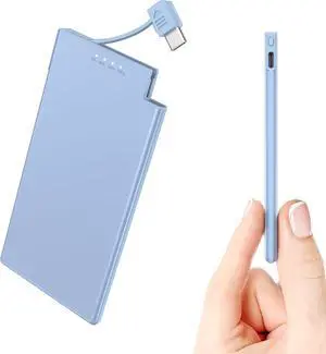 Auskang USB-C Portable Charger with Built in Cable-5000mAh Slim Power Bank Compatible with iPhone17 16 15 Series/Samsung/Google Pixel/Android Phones etc/Thin Battery Pack for Travel
