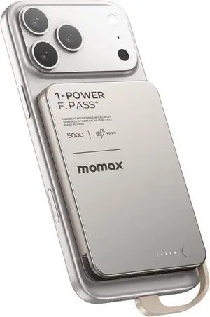 MOMAX Ultra-Slim 5000mAh Portable Power Bank with Built-in USB-C Cable, PD 20W Fast Charging Battery Pack for iPhone 17/16/15, iPhone air, Galaxy, Pixel (No Wireless,No Lighting)