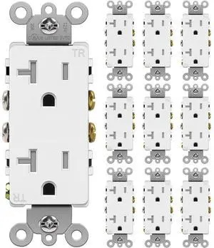 BESTTEN 20 Amp Decorator Wall Receptacle Outlet, Tamper-Resistant, 20A/125V/2500W, Residential & Commercial Use, UL Listed, 10 Pack, White