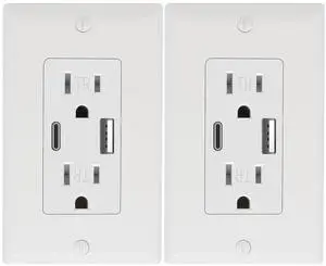 2 Pack - POWAWINI Wall Outlet 15 Amp, UL Listed, USB C & USB A Port, Self-Test with LED Indicator, Tamper-Resistant Receptacle with Decor Wall Plates and Screws (White)