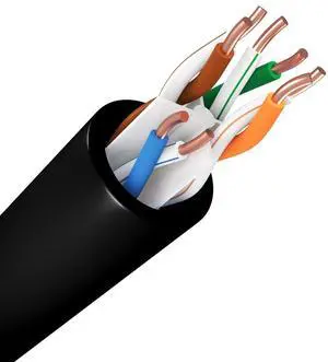 Cat6(e) Ethernet Cable 23AWG Solid Bare Copper Bulk Raw 600MHz 300 ft Outdoor/Indoor Heat Resistant Riser Rated CMR Black No Ends 1 Ft to 1000 Ft Available