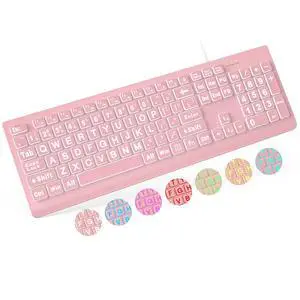 SABLUTE Large Print Backlit Keyboard, Wired USB Lighted Computer Keyboards with 7-Color & 4 Modes Backlit, Oversize Letters Keys Easy to See and Type, Quiet Keyboard Compatible for PC, Laptop -Pink