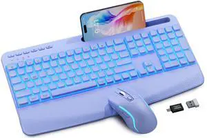 Purple Keyboard and Mouse Wireless Combo, 4000mAh Rechargeable Backlit Quiet Keyboards mice Set, USB Ergonomic Key Board with Wrist Rest & Phone Holder for PC, Mac, Windows, Natural Soft Typing