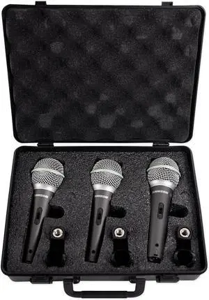SAMSON Q6 3-Pack Dynamic Vocal Cardioid Handheld Microphones+Mic Clips+Foam Case