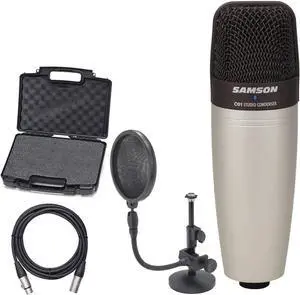 Samson C01 Large Diaphragm Condenser Microphone with Mic Stand, Pop Filter, and XLR Mic Cable Studio Recording Bundle