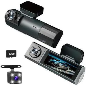 Dash Cam Front and Rear,1080P Dash Camera for Cars,3 Channel Car Camera Front Rear and Inside with 32GB Card, Night Vision, G-Sensor,Dashcam