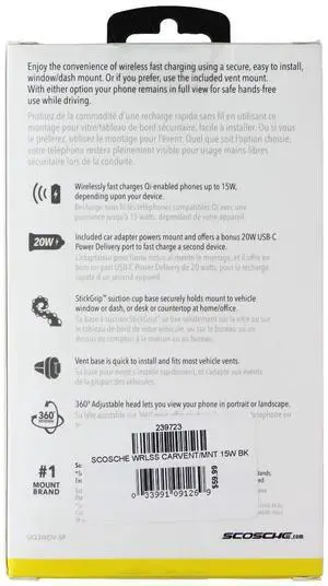 Scosche StuckUp Qi Wireless Charging Phone Mount for Window/Dash/Vent (UQ3WDV)