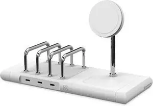 Scosche BL2KIT1WT-AP BaseLynx 2.0 Modular Charging Station - White - 15 Watts - Magsafe Wireless Charger Stand - 5 Watts Charging Pad